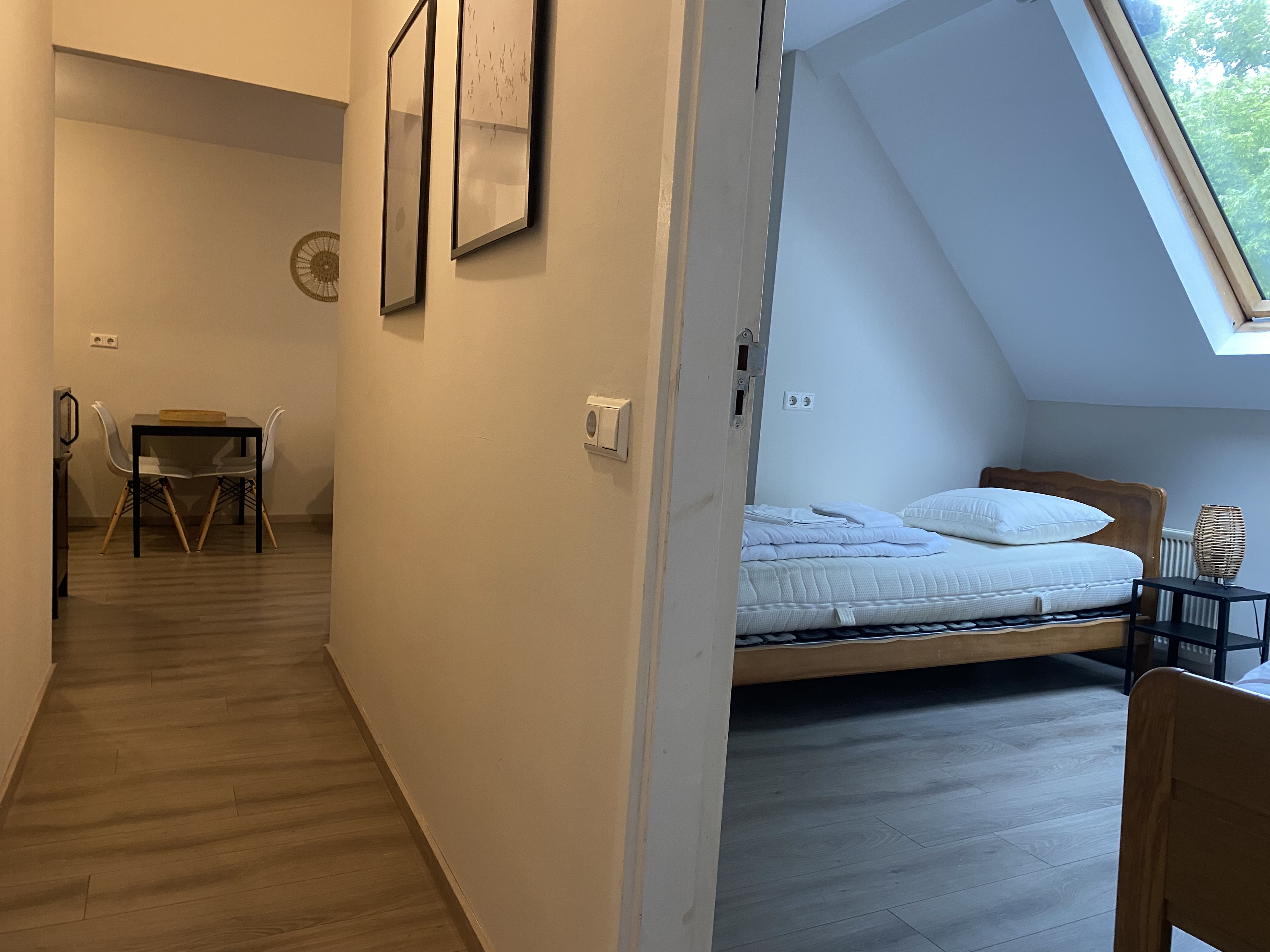 Die Wohnung verfügt über gut ausgestattete Schlafzimmer für bis zu vier Personen und eignet sich somit für eine Einzelperson, ein Paar oder ein kleines Team auf Dienstreise. Das moderne Badezimmer ist mit zeitgemäßen Armaturen ausgestattet und bietet Komfort für den Start in den Tag oder die Entspannung nach der Arbeit.